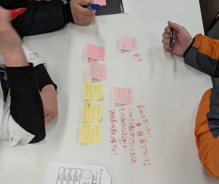 社員面談では腹落ちを重視し、フィードバックだけでなくフィードフォワードを意識することを学びました。また、現在の評価制度はプロトタイプ段階であり、評価者の意見を反映しながら全社基準での精度向上を図ることを念頭に、社内で「こういった評価項目も必要ではないか」といった討議を重ねることも重要である、と講師からアドバイスをいただきました。研修後半はワールドカフェ形式のワークを通じ、課題と解決策を議論し、参加者ひとりひとりの意識向上を目指しました。